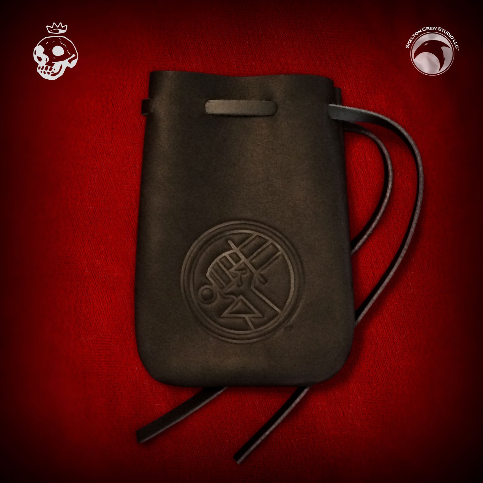 This B.P.R.D. logo thick black leather pouch is based on the designs of Mike Mignola, creator of "Hellboy" and "B.P.R.D.," published by Dark Horse Entertainment. This officially licensed pouch measures 5 inches tall by 4 inches wide.