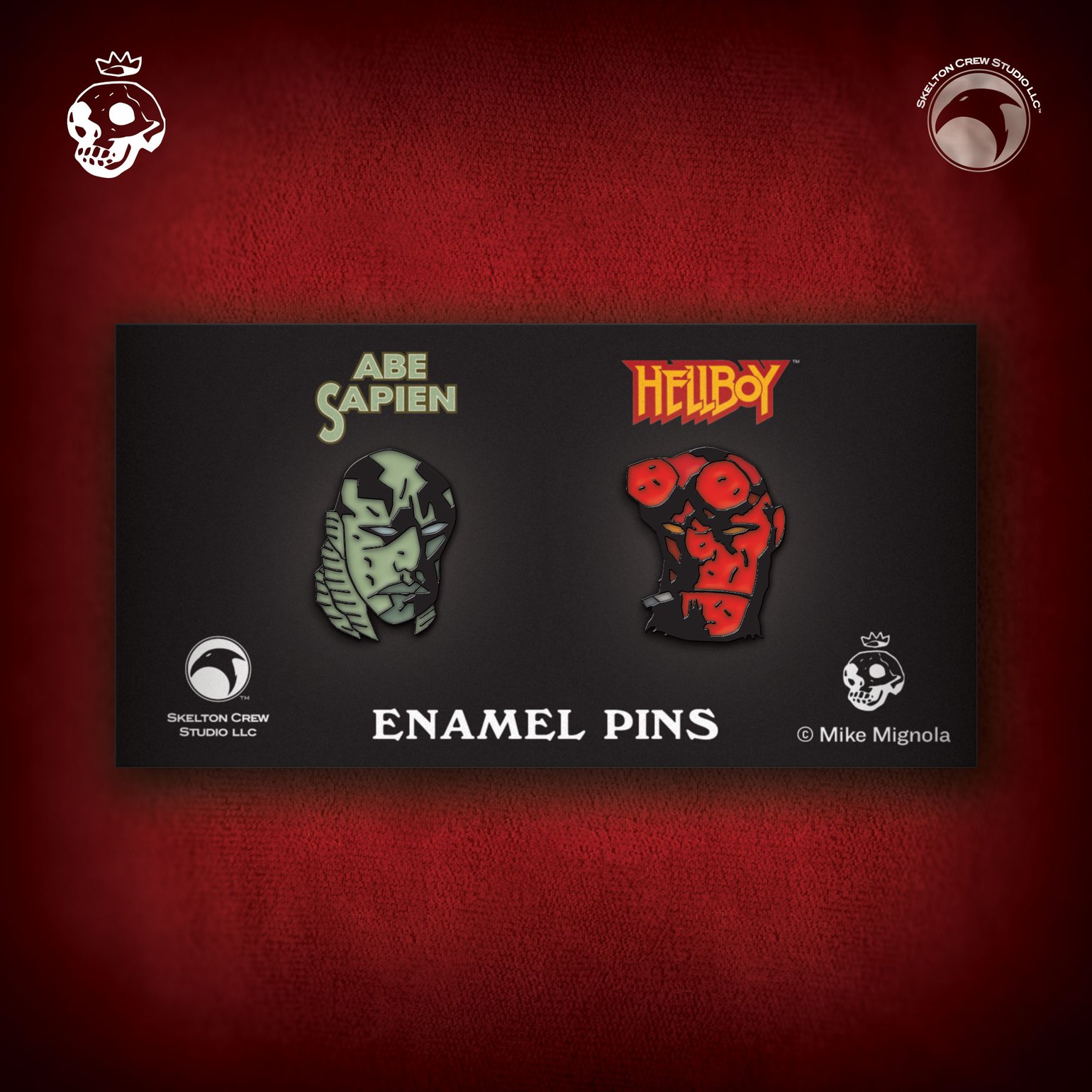 The Limited Edition Abe Sapien & Hellboy pins are torn from the pages of Mike Mignola's iconic "Hellboy" and "B.P.R.D.," published by Dark Horse Entertainment. These officially licensed pins are approx. 1-inch tall each.