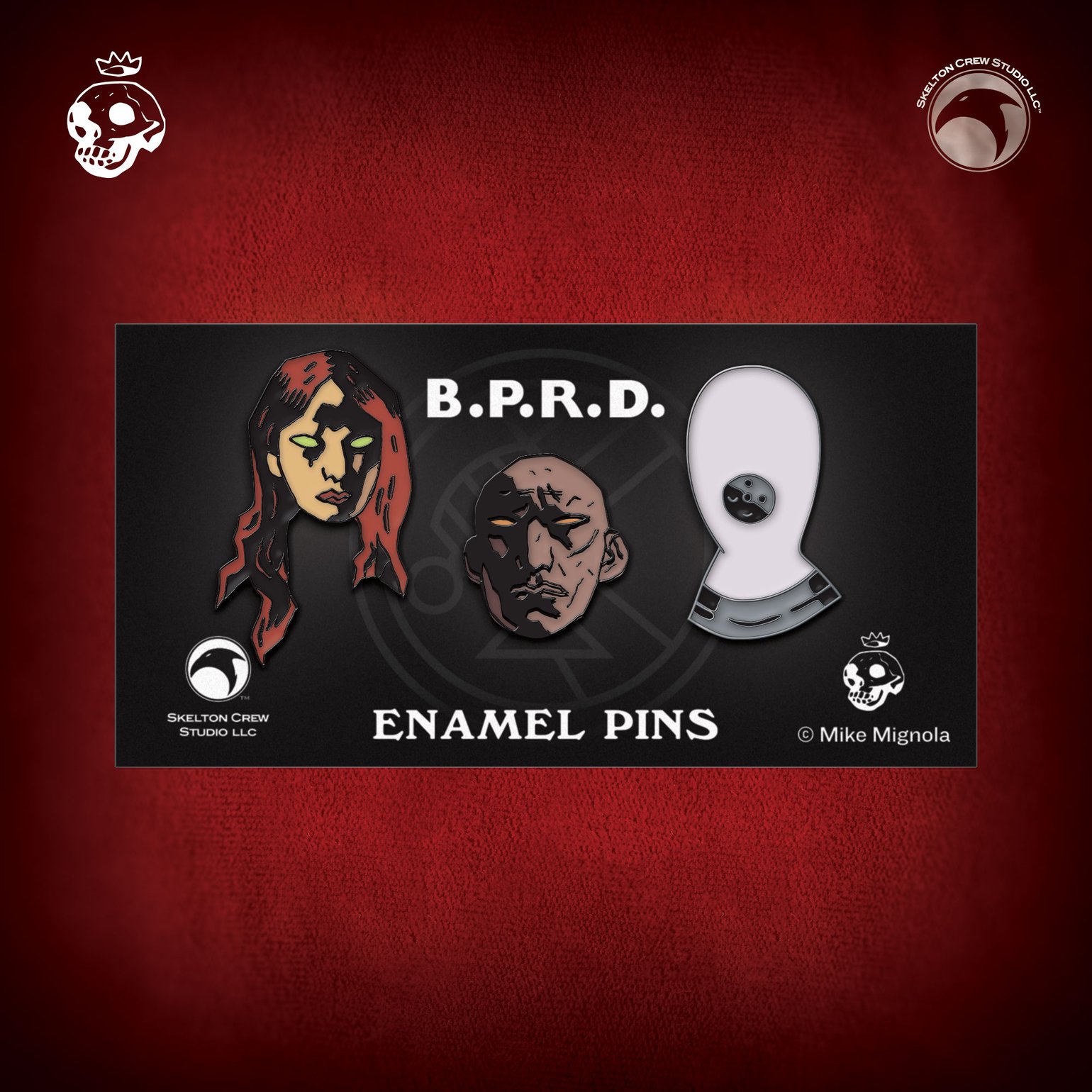The Limited Edition Liz, Roger & Johann pins are torn from the pages of Mike Mignola's iconic "Hellboy" and "B.P.R.D.," published by Dark Horse Entertainment.