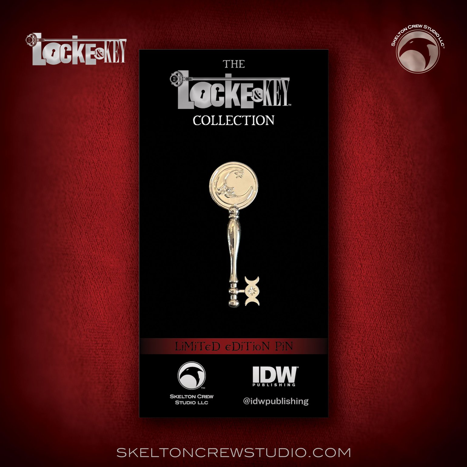 The Moon Key Pin is straight out of the pages of Joe Hill and Gabriel Rodriguez's "Locke & Key" published by IDW. This officially licensed pin replica measures approx. 1.8-inches long.