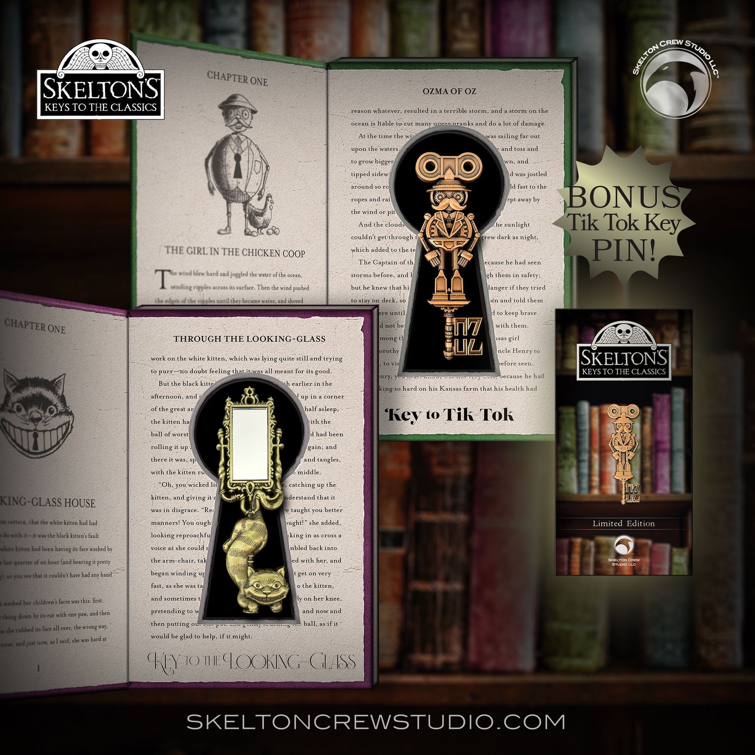 Skelton's Keys to the Classics: Key to the Looking-Glass & Key to Tik-Tok set w/BONUS Tik-Tok pin!